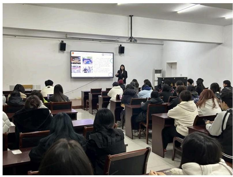 在分享会上,陈诗琪围绕”挑战杯(大小挑)"“互联网+”“节能减排”“调研河北” “冀青调研”六大赛事进行了详细介绍与案例分享。其中,着重讲解了关于项目选题与  申报书撰写的相关事宜,对同学们的现实情况与专业特点提出了针对性的参赛建议。