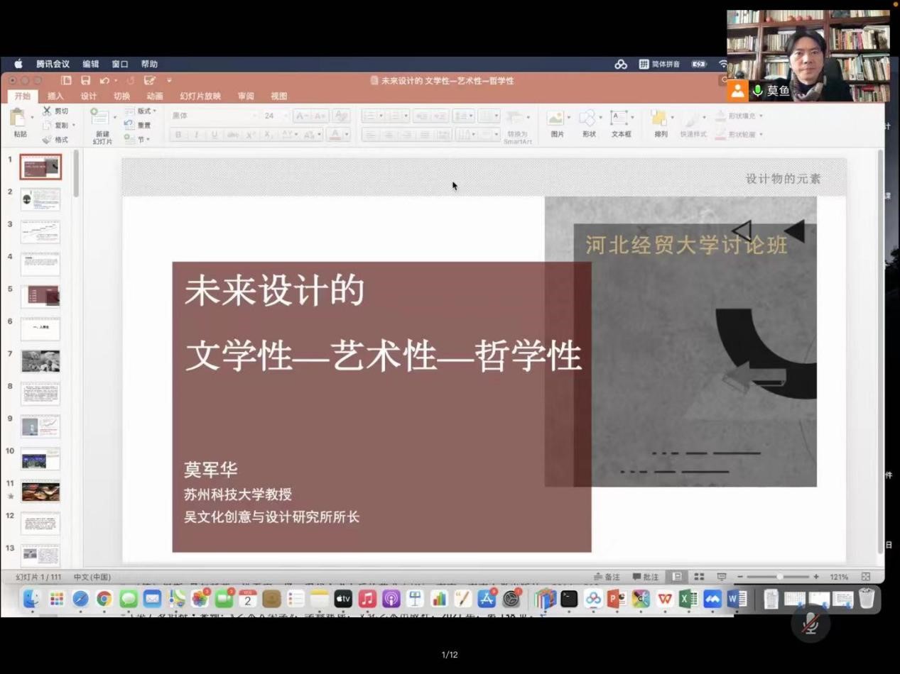 12月2日下午,苏州科技大学硕士生导师莫军华教授应vsport官方网站邀请,于线上作了题为“未来设计的文学性—艺术性—哲学性”的学术讲座。讲座由vsport官方网站经理聂书法主持,80多名相关专业师生参会。