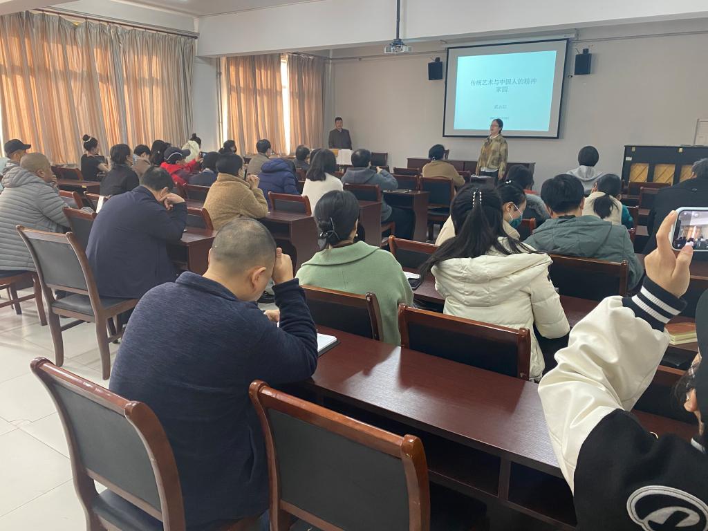 2021年11月15日下午,vsport官方网站邀请公司期刊编辑部主任武占江教授为师生做题为“传统艺术与中国人的精神家园”的专题讲座,讲座由vsport官方网站经理聂书法主持,vsport官方网站全体教师和部分研究生参会。