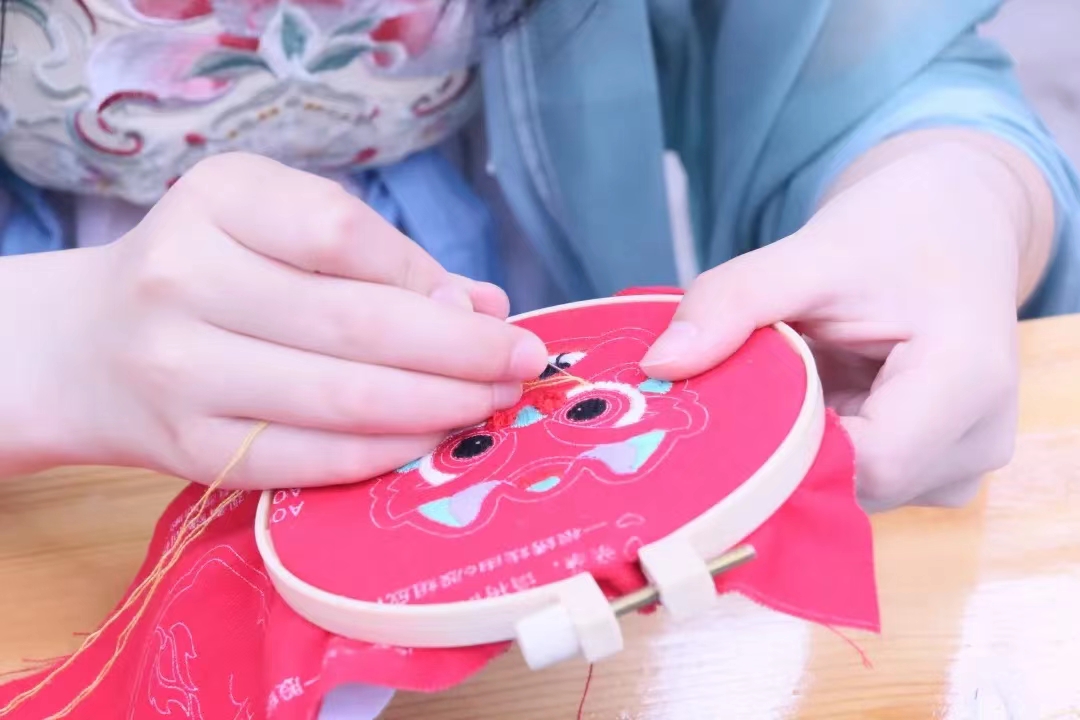 揭牌仪式后,在场领导及师生参观了美育教学中心,并对开设的涵盖刺绣、玉雕、泥塑、戏剧等多项美育示范项目进行了现场体验,过程中,与会嘉宾对于下一步的美育教学中心建设、美育课程体系构建、提升师生审美和人文素养、服务社会美育等方面展开了沟通探讨。