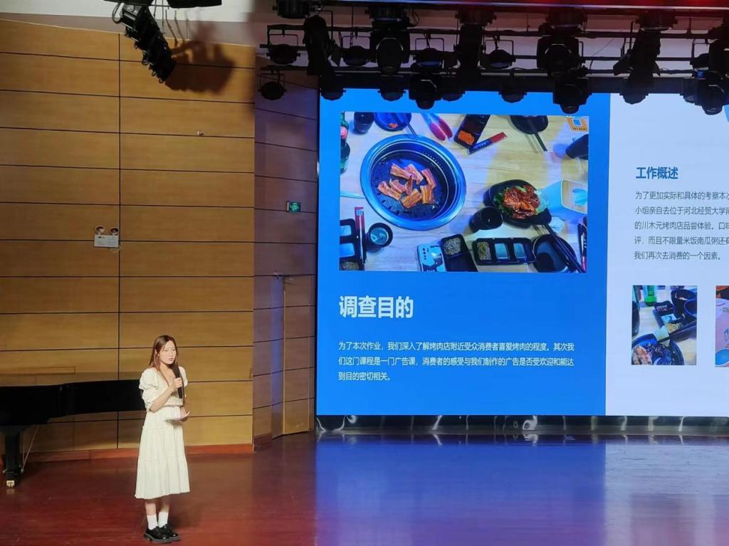 广告艺术设计课程是校级精品课程,该课程自2016年开始进行课程教学改革,课程考核均对接企业,开展品牌广告发布课程展示,员工团队依次上台宣讲自己的设计方案,这种“以赛促学、以赛促教”的形式对于激发员工学习兴趣,促进员工设计能力的提升具有重要意义。本次课程对接“川木元”烤肉店进行广告设计,员工们展示了自己精彩纷呈的设计方案,得到了评委老师们的一致认可。展示结束后,美育教学中心教研室主任门丽、视觉传达设计系主任赵小芳、环境设计系主任王文捷以及教师张伟英、梁博宇对员工作品进行了点评。活动经过现场投票和评委打分最终评选出“最佳创意奖”“最佳执行奖”“最具人气奖”三个获奖团队。最后“川木元”烤肉店总经理为获奖团队颁发了证书和奖金。