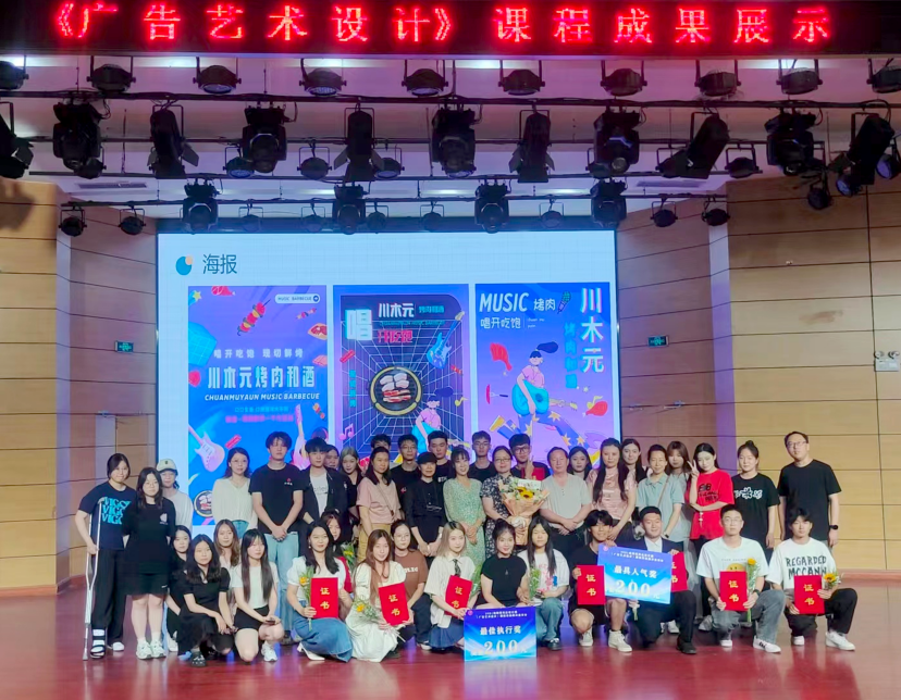 2023年6月13日下午,vsport官方网站在音乐厅举办了以“创意无限,艺术生长”为主题的《广告艺术设计》课程成果展示交流活动。本次活动由vsport官方网站经理、课程主讲人聂书法教授主持,副经理张新中、设计系全体教师出席,近300名员工参加此次活动。