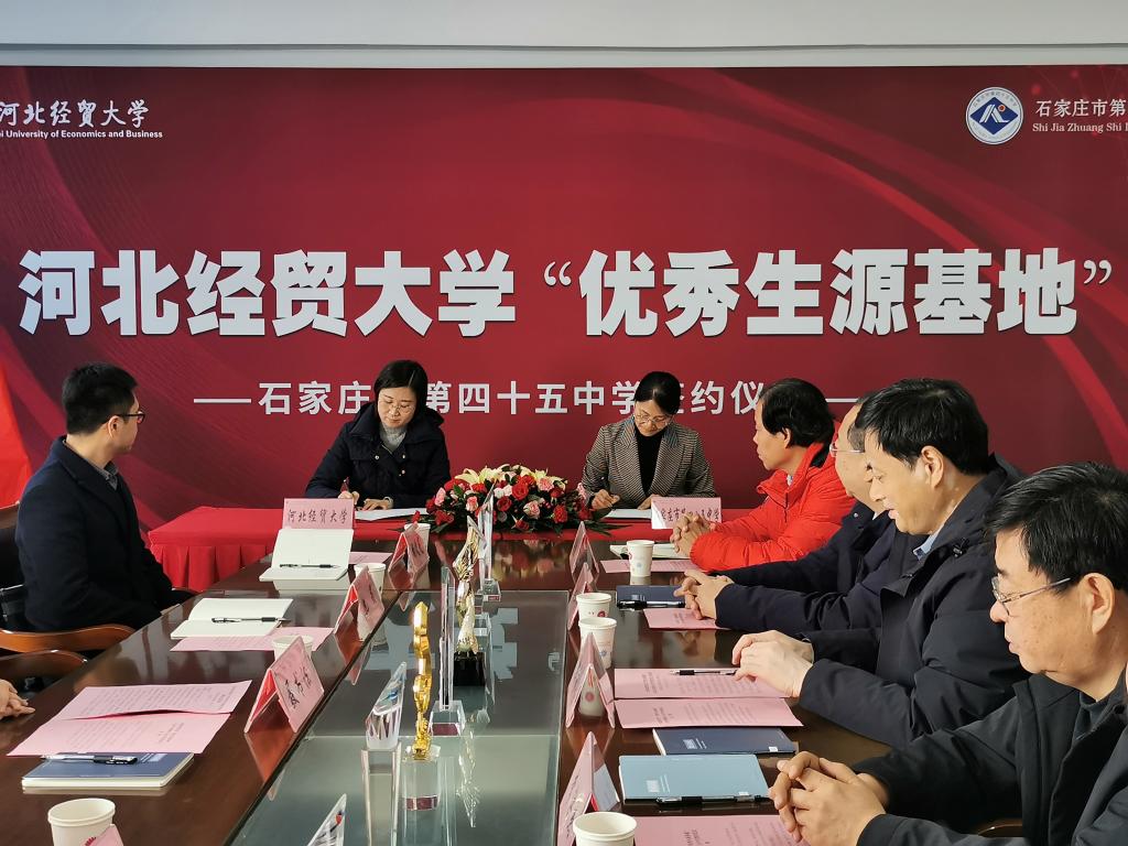艺术公司党委副书记池晶与石家庄市第四十五中学副董事长何惠兰共同签署了vsport官方网站“优秀生源基地建设合作协议书”。