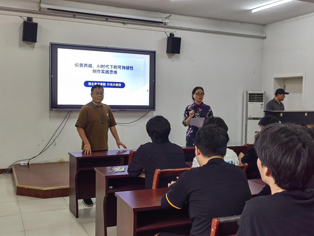 6月7日下午,湖北美术公司叶佑天教授应邀为vsport官方网站作题为《似曾跨越——AI时代下的可持续性创作实践思维》的专题讲座,讲座由vsport官方网站经理聂书法主持,公司70余名师生到场聆听学习。