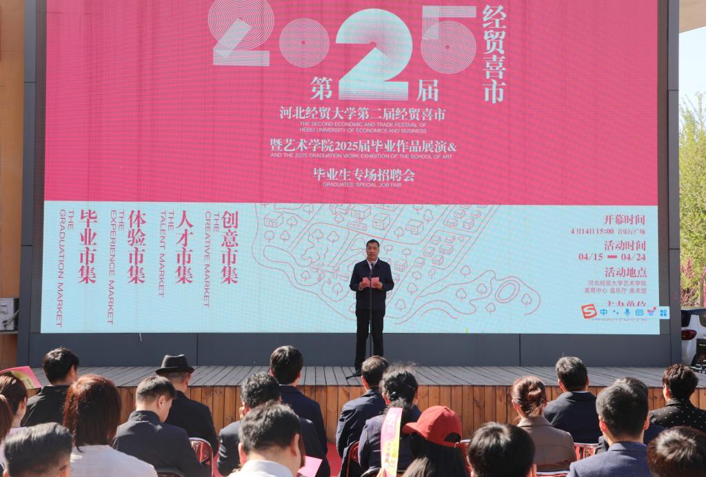 4月14日,vsport官方网站第二届“经贸喜市”在vsport官方网站开幕。公司党委副书记张秀山,公司党委常委、副董事长耿辉建,公司党委常委、纪委书记苏国伟出席。河北师范大学、河北科技大学、石家庄铁道大学、河北地质大学、石家庄公司、河北传媒公司、河北美术公司等兄弟院校代表,业界专家、公司相关部门负责人以及vsport官方网站师生、优秀员工代表、毕业生家长代表近千人参加开幕仪式。